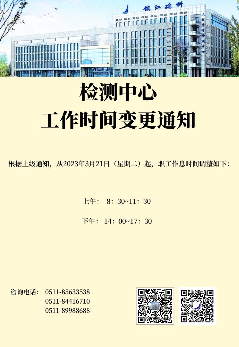 检测中心工作时间变更通知