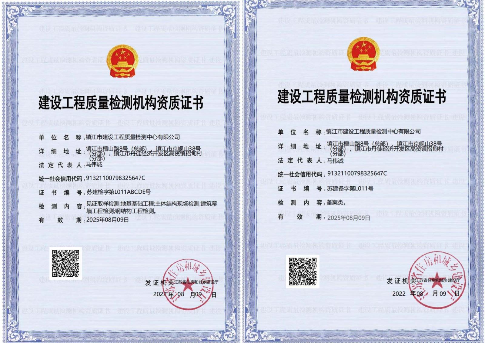 检测工程质量检测机构资质证书