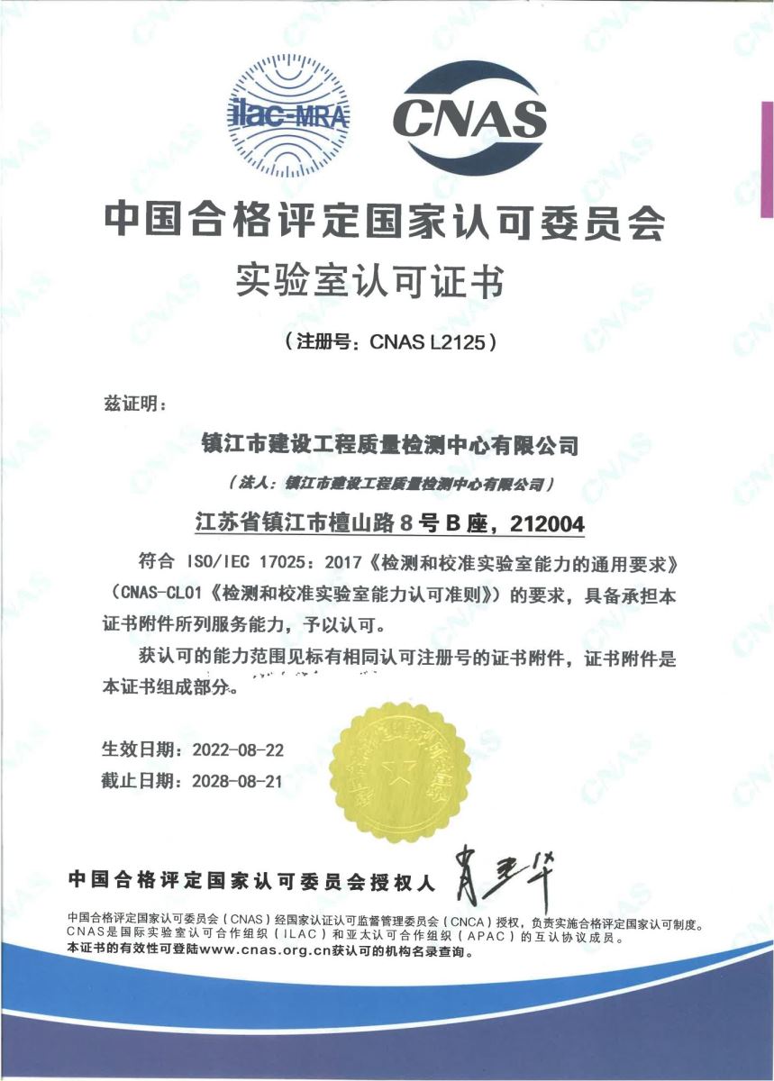 CNAS实验室认可证书