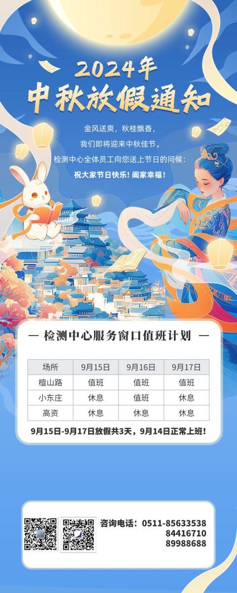 检测中心2024年中秋节服务窗口值班计划