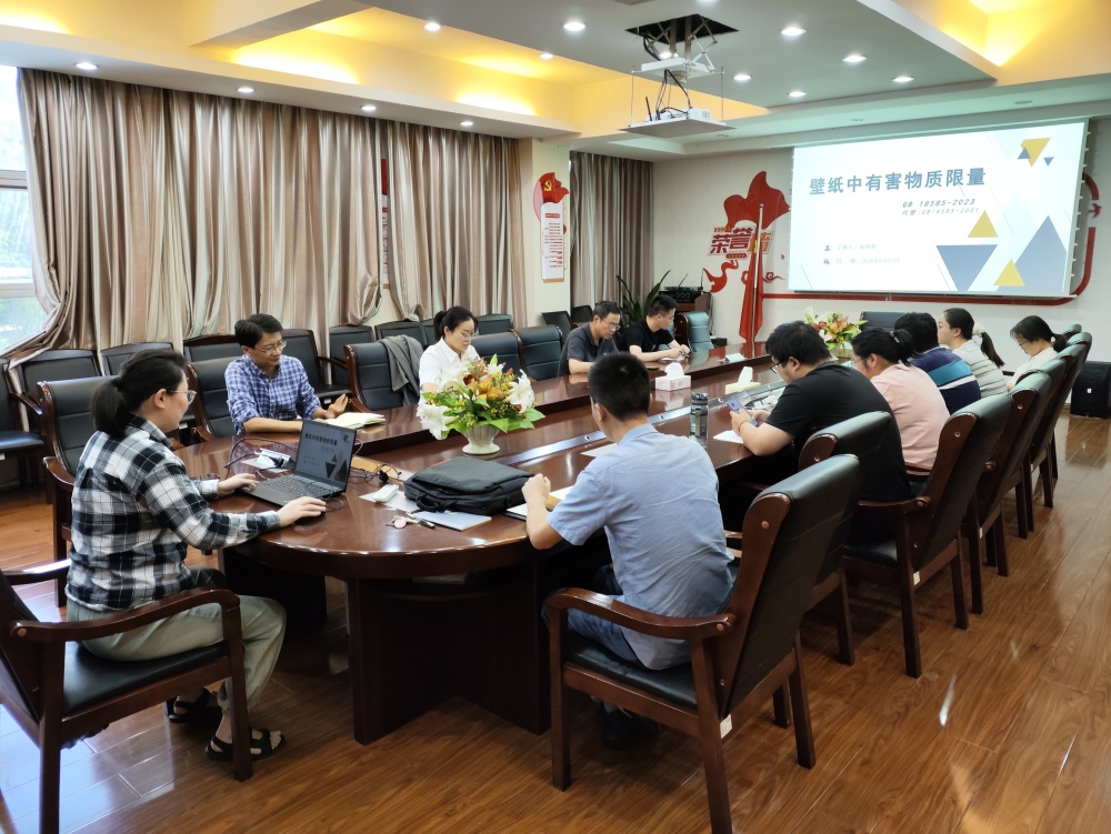 2024年9月23日下午,检测中心在二楼会议室组织开展了对GB 18585-2023 《室内装饰装修材料 壁纸中有害物质限量》的培训学习,该标准将于2024年12月1日正式实施。